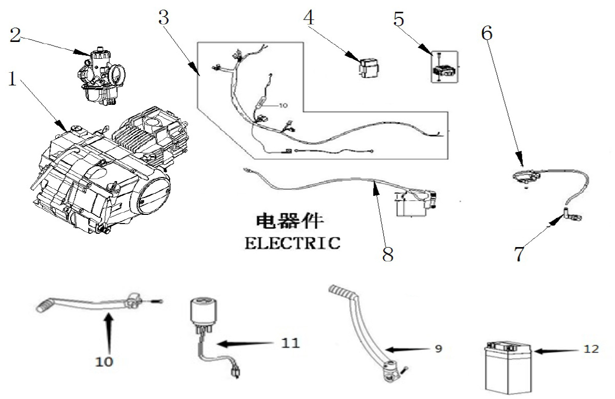 Moteur zongshen 190cc démarreur électrique