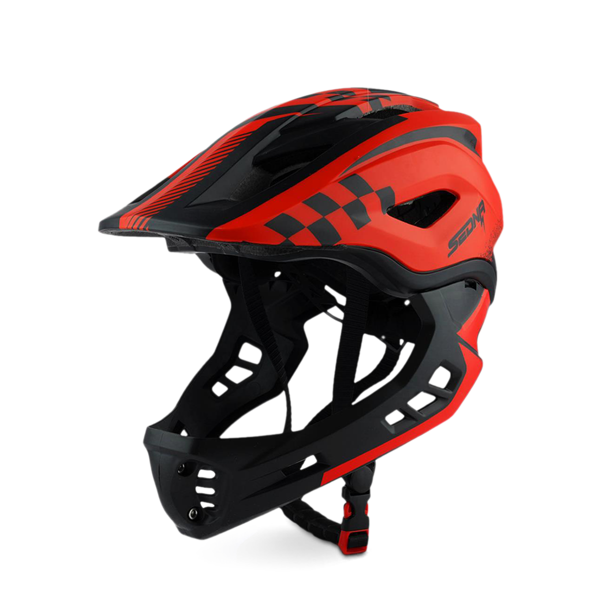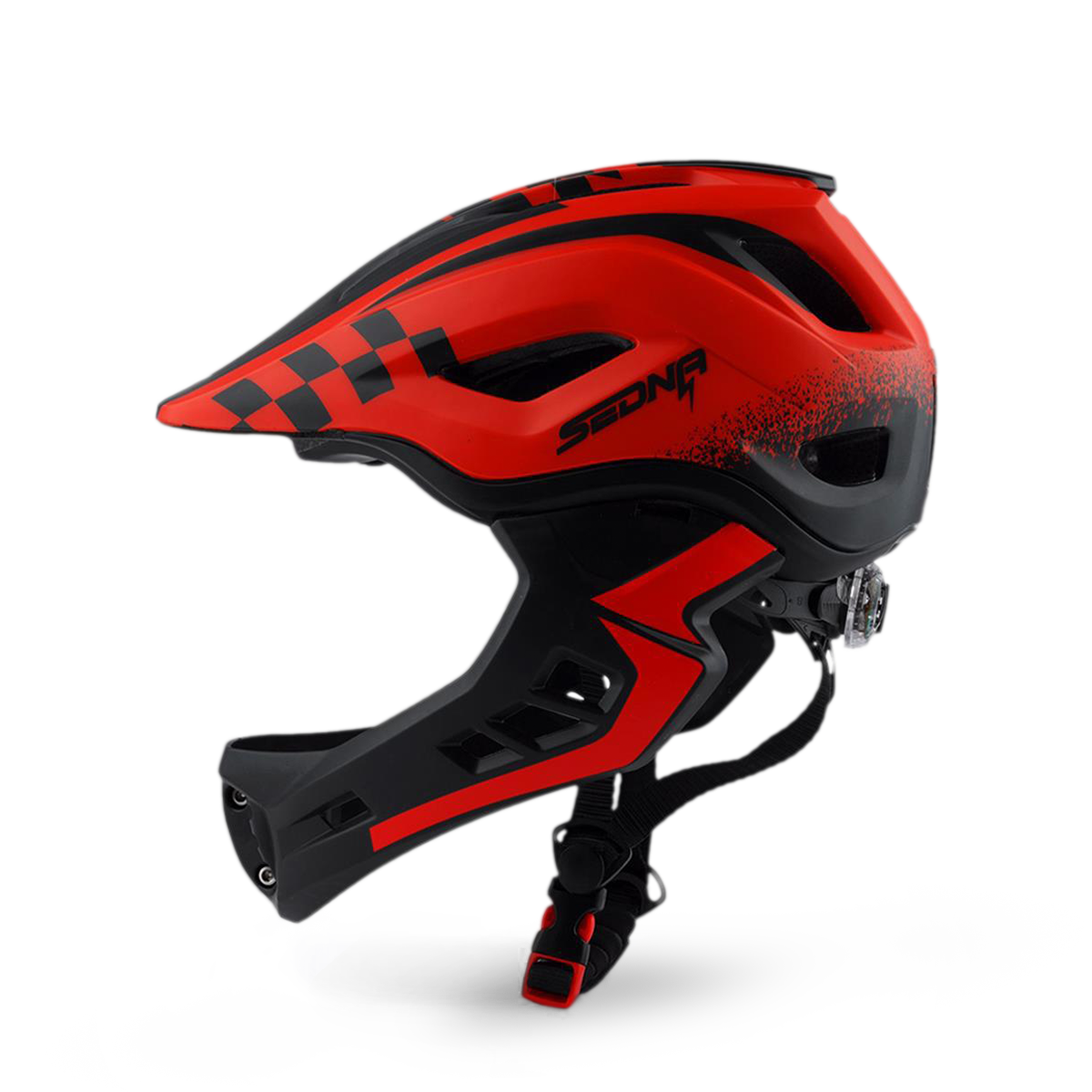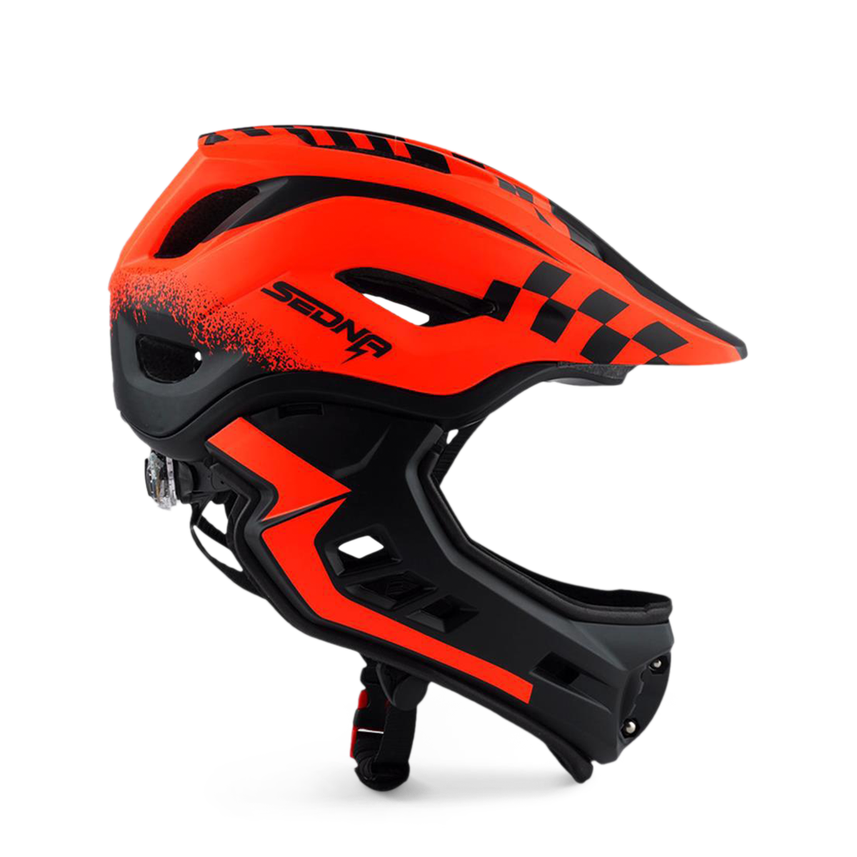 Le casque Sedna est notre nouveau casque intégral pour les enfants avec une mentonnière amovible. La mentonnière est facile à retirer et est aussi facile à réinstaller. Lorsque la mentonnière s'enlève, l'aération des joues ajoute encore plus de puissance de refroidissement lorsque votre enfant utilise son véhicule. Le gros plus de ce casque est son poids, avec seulement 410g, la tête de votre enfant sera protégée sans que ça lui fasse mal au coup.