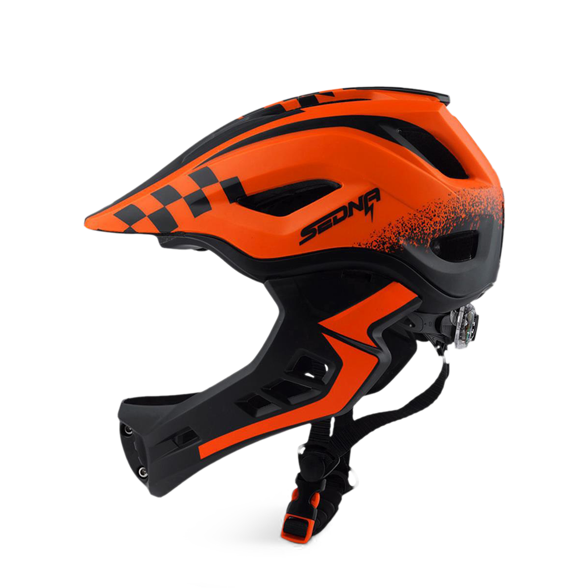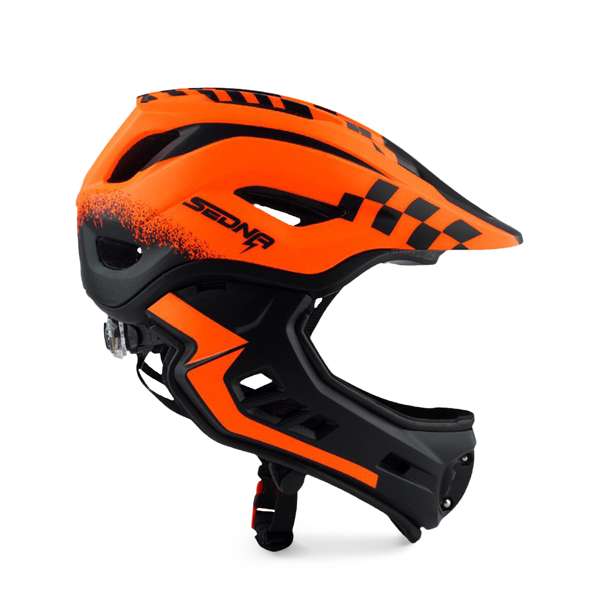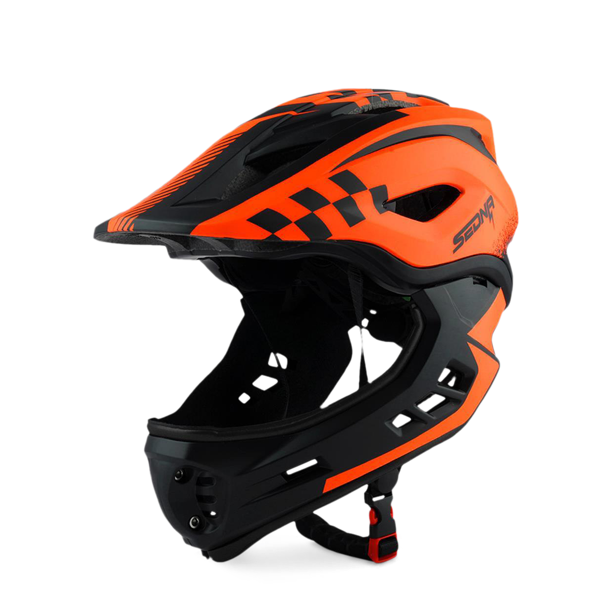 Le casque Sedna est notre nouveau casque intégral pour les enfants avec une mentonnière amovible. La mentonnière est facile à retirer et est aussi facile à réinstaller. Lorsque la mentonnière s'enlève, l'aération des joues ajoute encore plus de puissance de refroidissement lorsque votre enfant utilise son véhicule. Le gros plus de ce casque est son poids, avec seulement 410g, la tête de votre enfant sera protégée sans que ça lui fasse mal au coup.