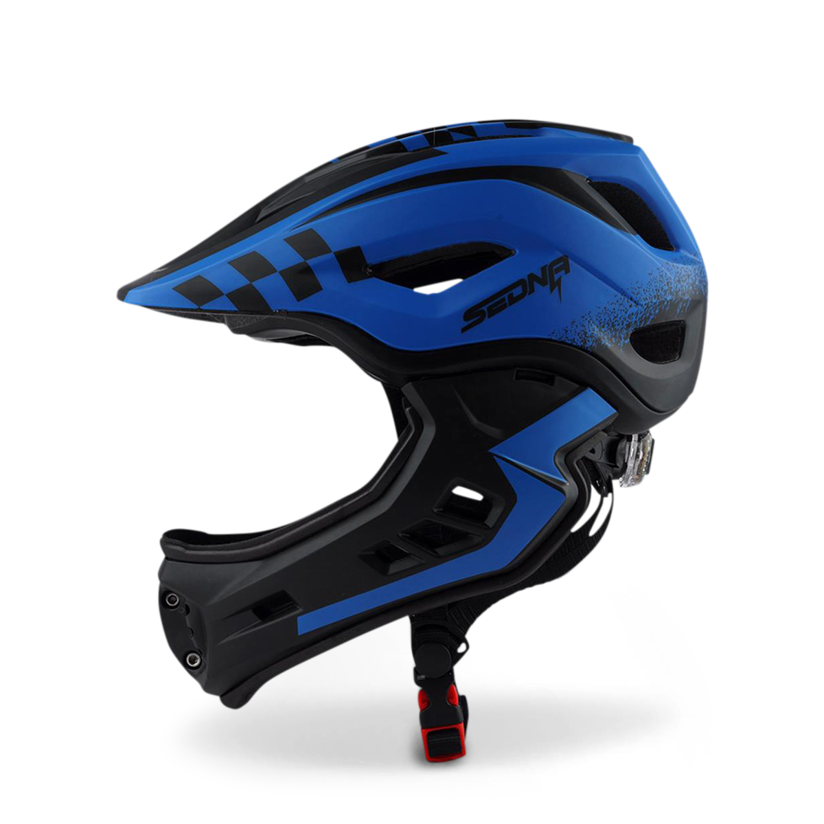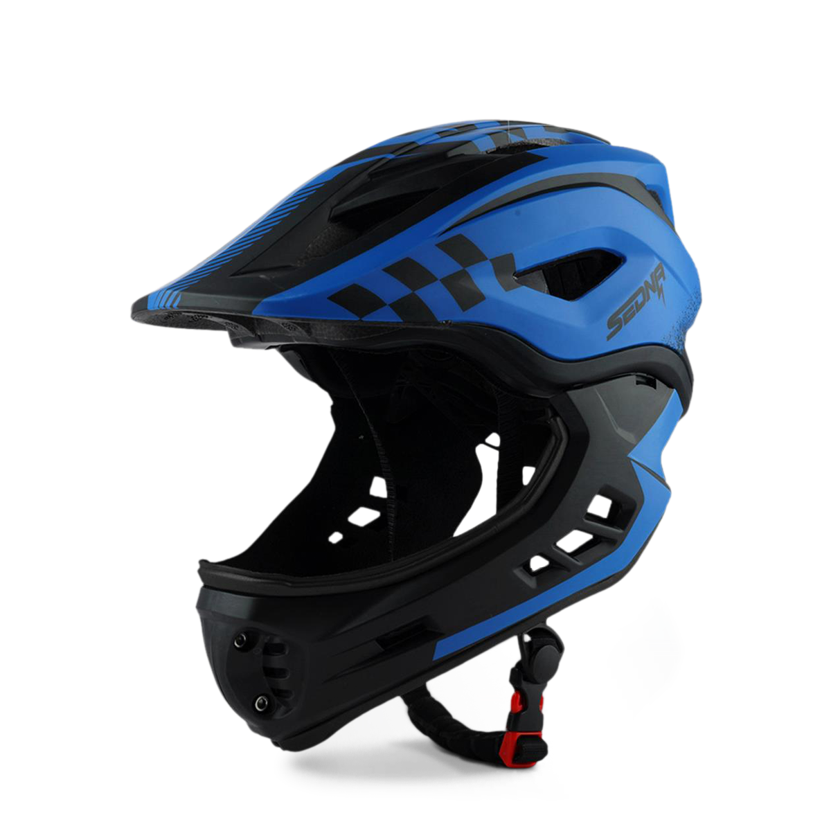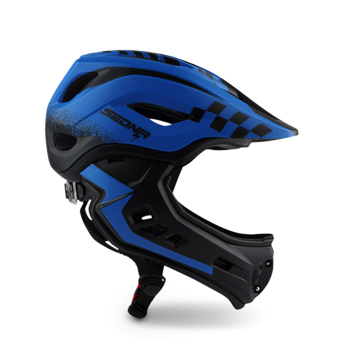 Le casque Sedna est notre nouveau casque intégral pour les enfants avec une mentonnière amovible. La mentonnière est facile à retirer et est aussi facile à réinstaller. Lorsque la mentonnière s'enlève, l'aération des joues ajoute encore plus de puissance de refroidissement lorsque votre enfant utilise son véhicule. Le gros plus de ce casque est son poids, avec seulement 410g, la tête de votre enfant sera protégée sans que ça lui fasse mal au coup.