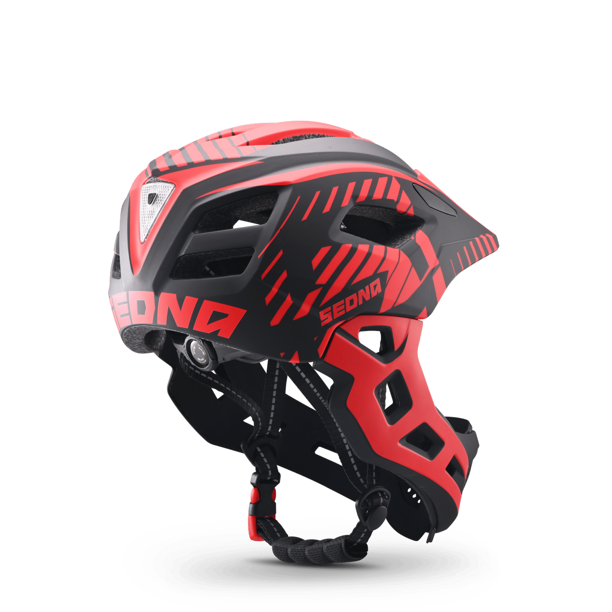 Sa coque robuste en polycarbonate protège efficacement en cas de chute, tandis que la mentonnière démontable assure à la fois une sécurité renforcée et une facilité d’entretien au quotidien.