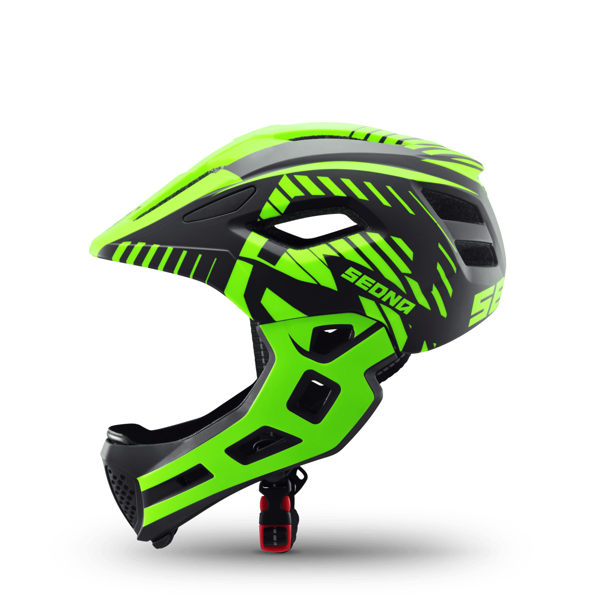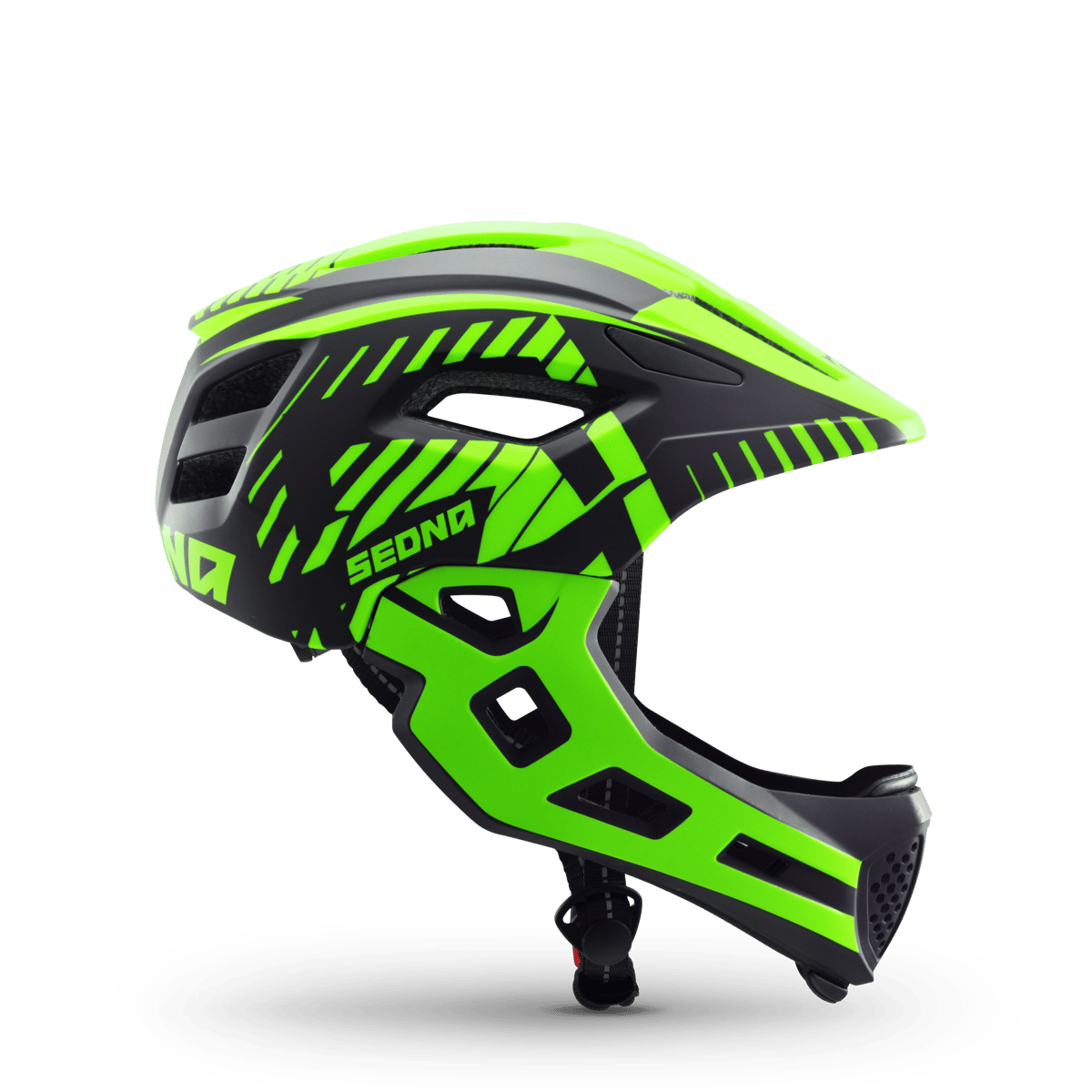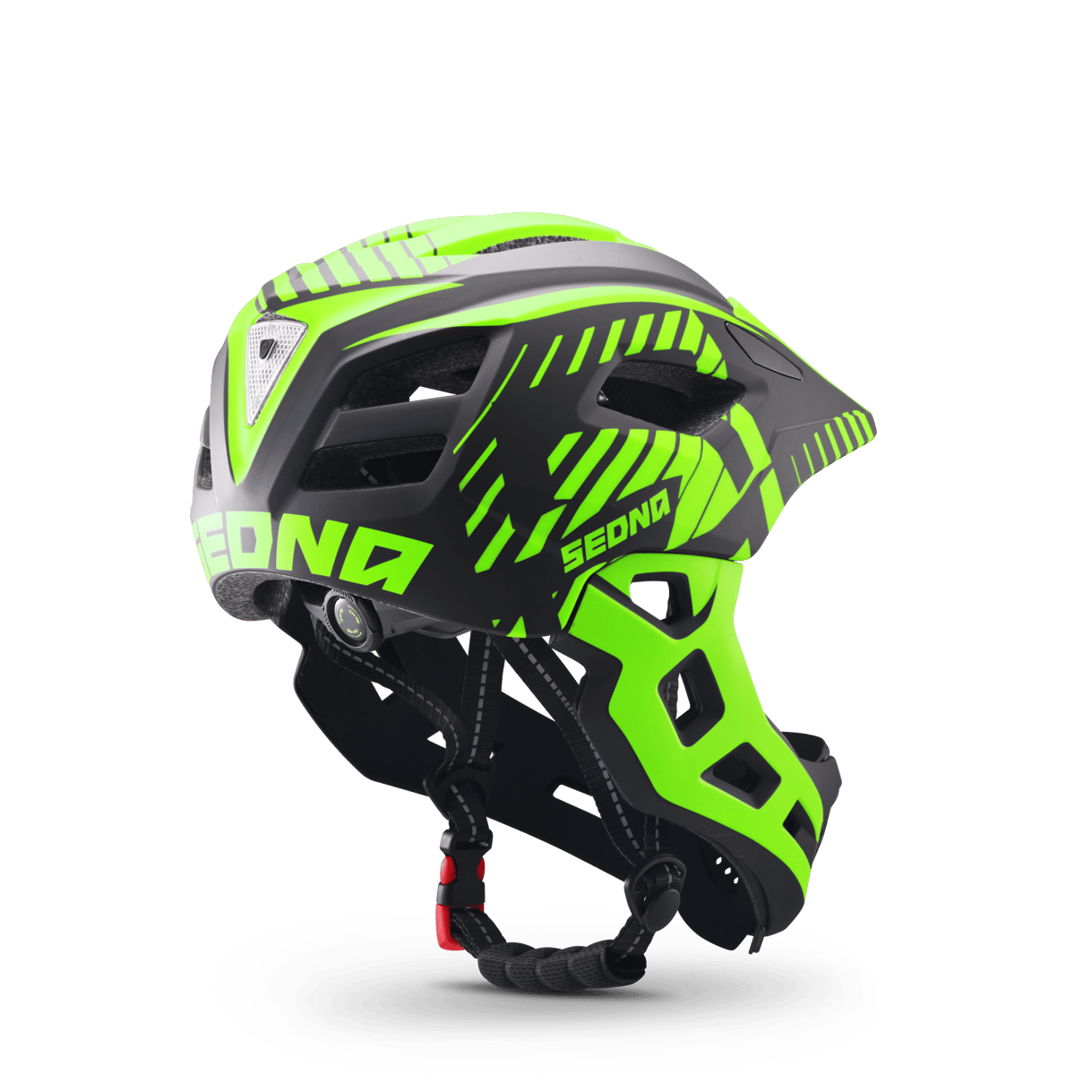 Sa coque robuste en polycarbonate protège efficacement en cas de chute, tandis que la mentonnière démontable assure à la fois une sécurité renforcée et une facilité d’entretien au quotidien.