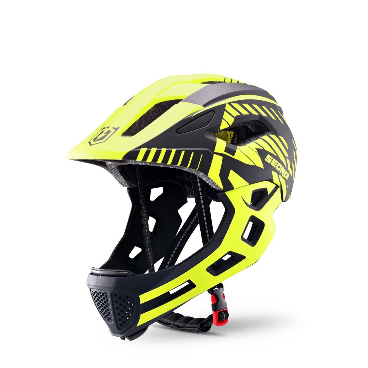 Sa coque robuste en polycarbonate protège efficacement en cas de chute, tandis que la mentonnière démontable assure à la fois une sécurité renforcée et une facilité d’entretien au quotidien.