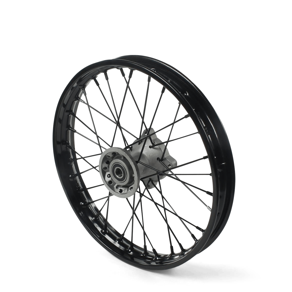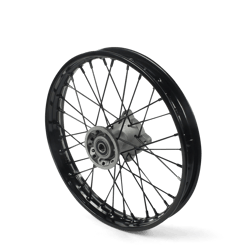 Cette roue est equipée d'un moyeu de 76mm qui accueillera votre axe de roue de 15mm. Cette roue est compatible avec toutes les pieds fourches en 15mm de Pit Bike et des Dirt Bike. Les rayons et les têtes de rayons sont en acier inoxydable haute qualité.