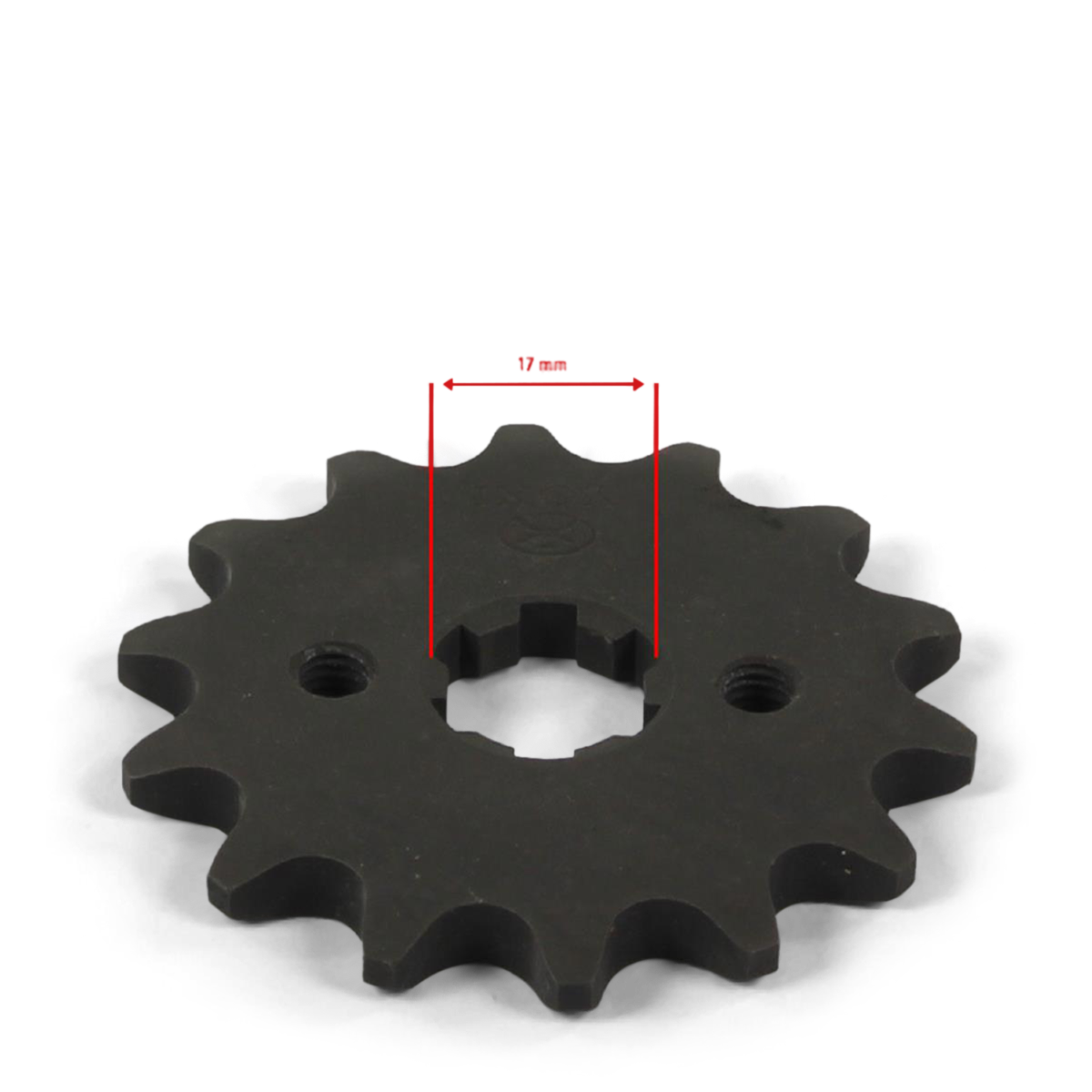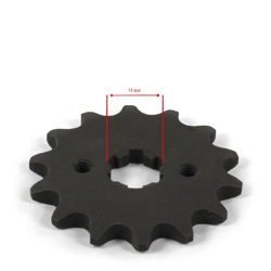C'est un pignon déstiné aux moteurs de Pit Bike et de Dirt Bike équipés d'arbre de transmition de 17mm. Il est pourvu de 14 dents pour les chaînes de taille 420.