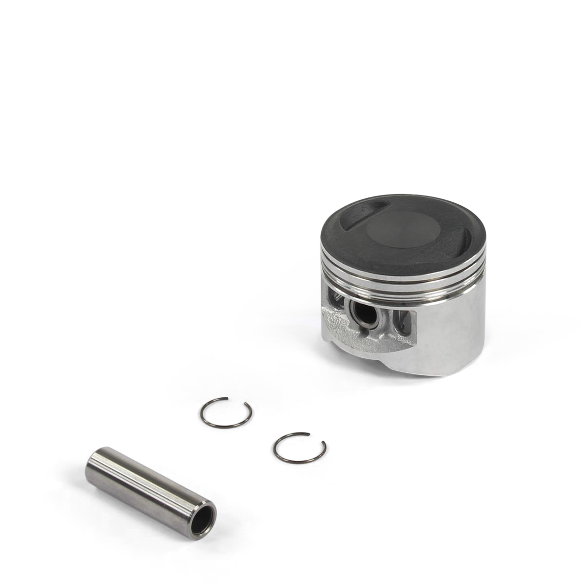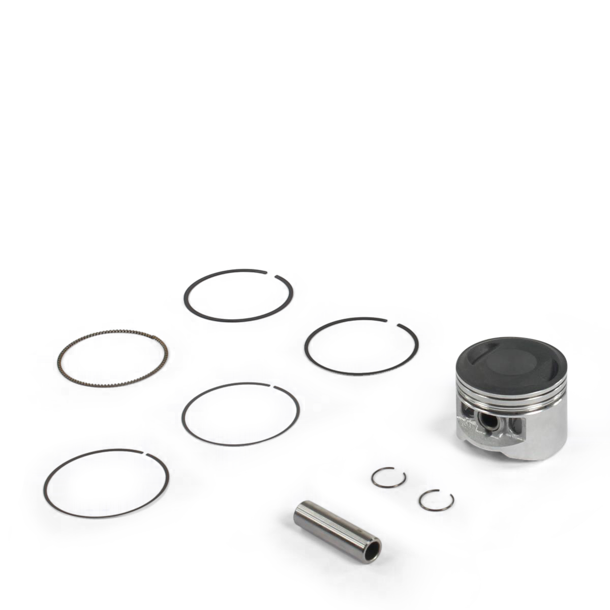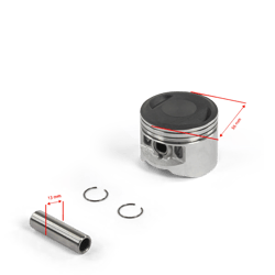 Ce kit piston est constitué d'un piston, un jeu de segments, un axe et deux circlips.
