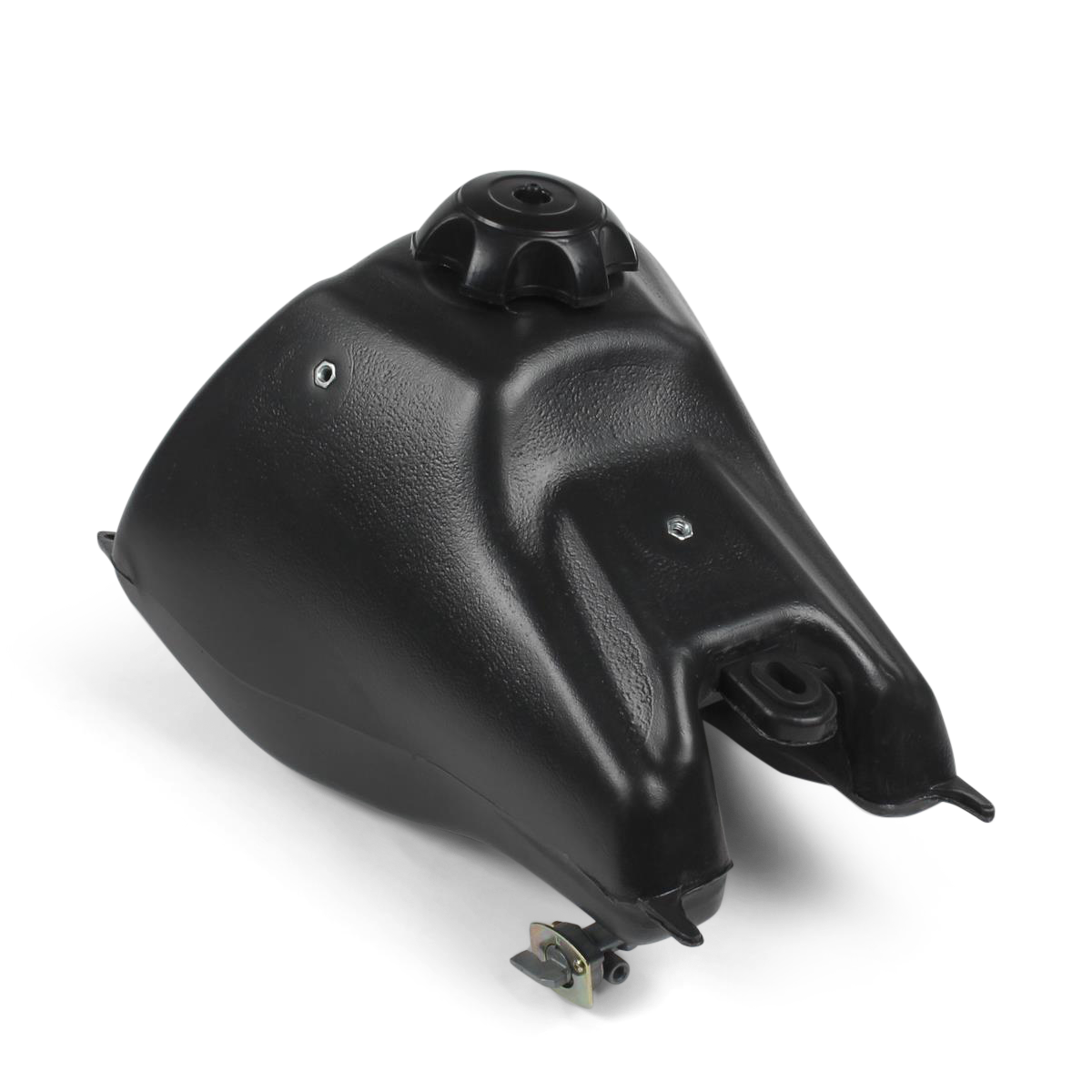 Réservoir Apollo en plastique noir pour Pit Bike ou Dirt Bike équipé de kit plastiques CRF70. Le réservoir se monte en lieu et place de l'origine.