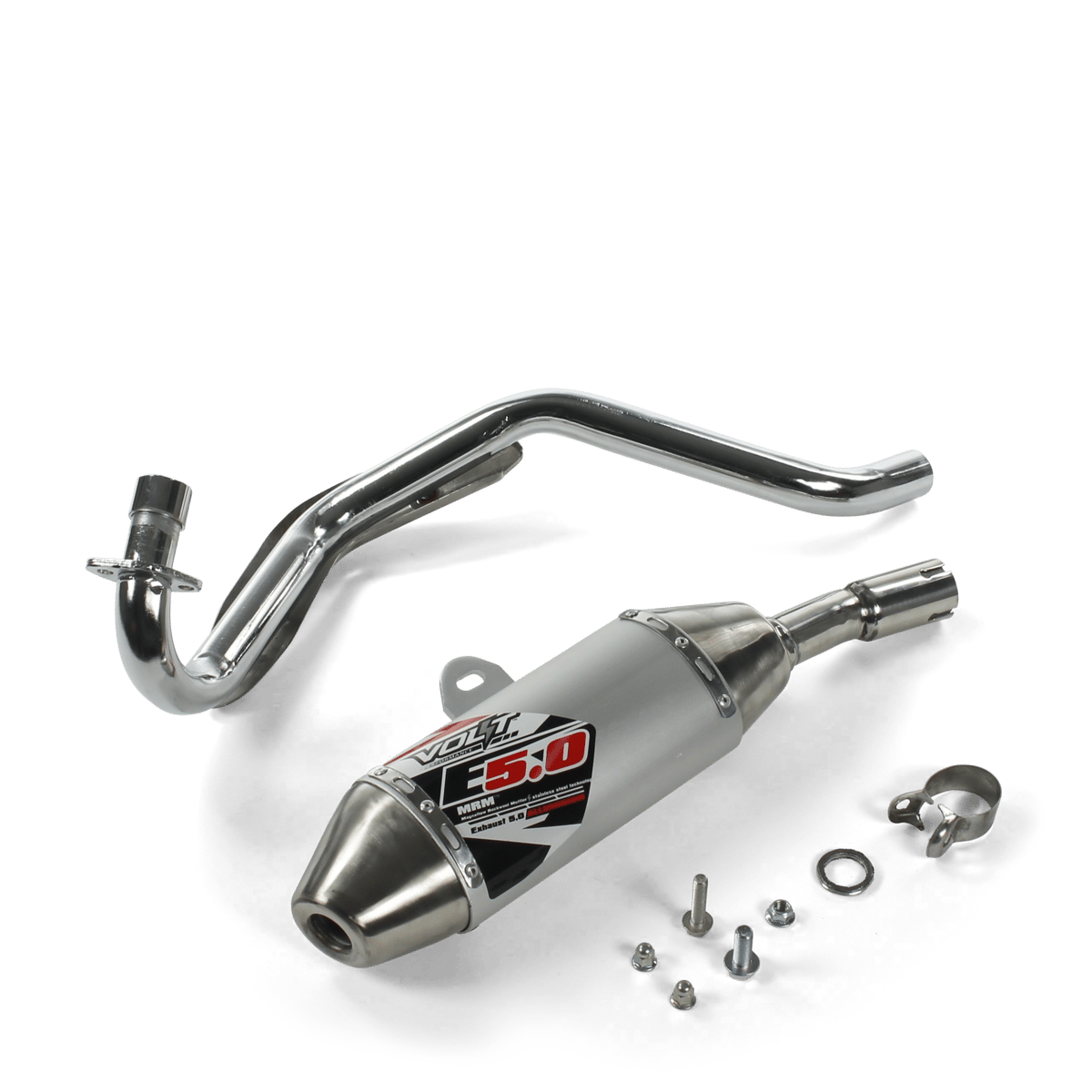 Cette ligne d'échappement Volt équipe l'ensemble de la gamme Apollo RFZ de 2015. Le collecteur se fixe directement sur les nouvelles boucles arrières RFZ.