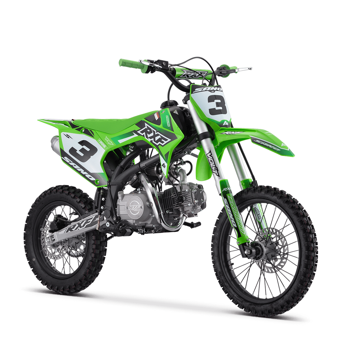 Pour des performances inégalées, la RXF Enduro 125 est équipée d'une fourche et d'un amortisseur Volt, développés en France, qui garantissent une tenue de route exceptionnelle, même sur les terrains les plus accidentés.