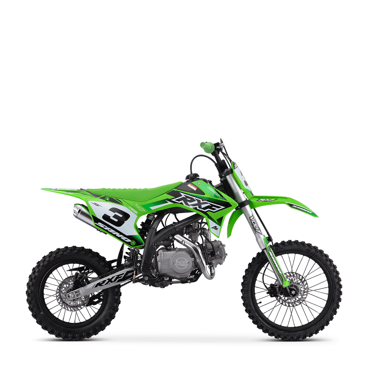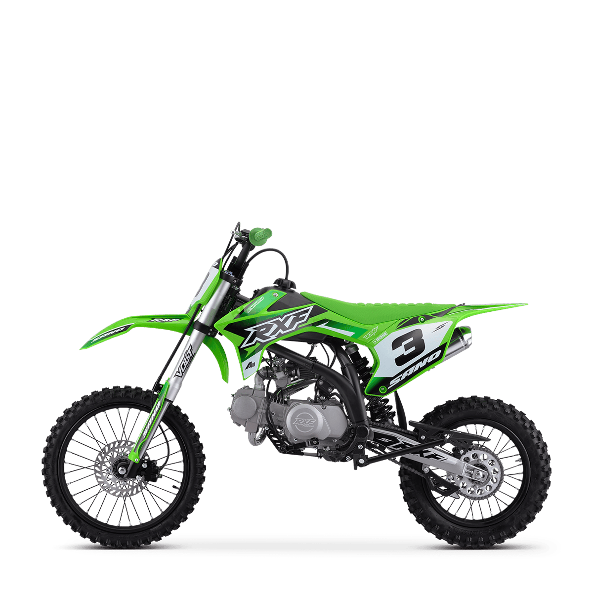 Le bras oscillant RXF monté sur une cage à aiguille assure une suspension fluide et réactive, garantissant que chaque saut et chaque virage sont maîtrisés en douceur. En outre, le kit plastique RXF et les cale-pieds RXF ajoutent une touche de style unique développée en France en collaboration avec des pilotes chevronnés.