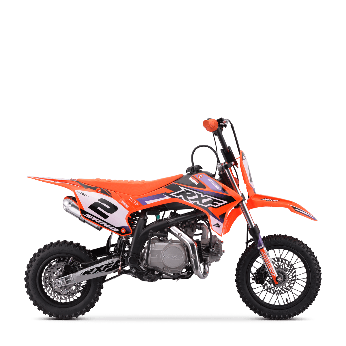 Le bras oscillant RXF monté sur une cage à aiguille assure une suspension fluide et réactive, garantissant que chaque saut et chaque virage sont maîtrisés en douceur. En outre, le kit plastique RXF et les cale-pieds RXF ajoutent une touche de style unique développée en France en collaboration avec des pilotes chevronnés.