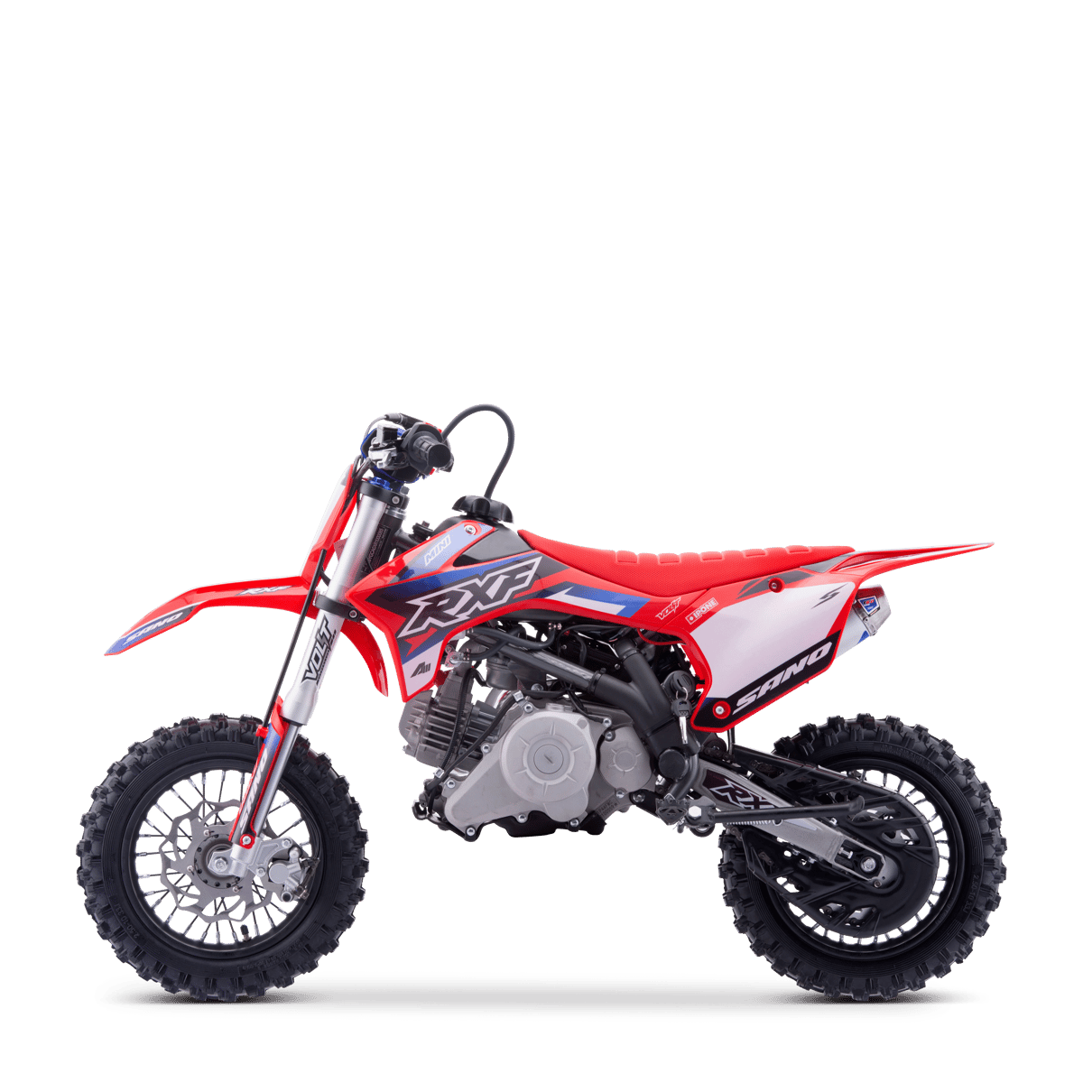Cette RXF est équipée des toutes nouvelles suspensions Volt Racing, la fourche et l'amortisseur ont été développés en France pendant plus d'un an avec notre préparateur. La fourche Volt a été développée pour avoir un maximum de confort.