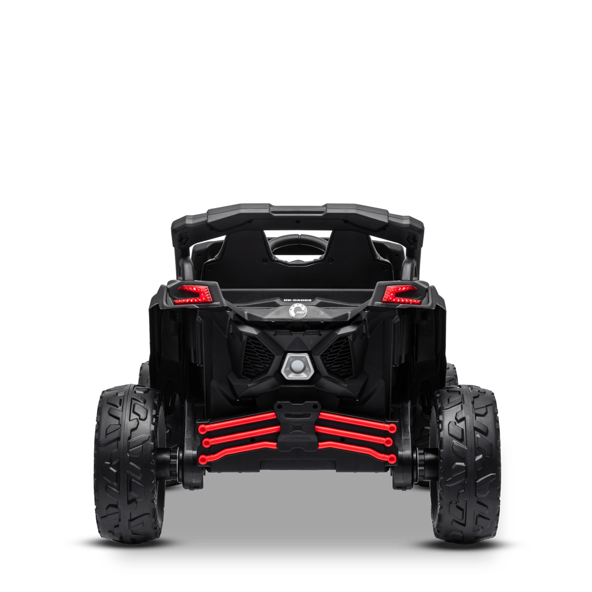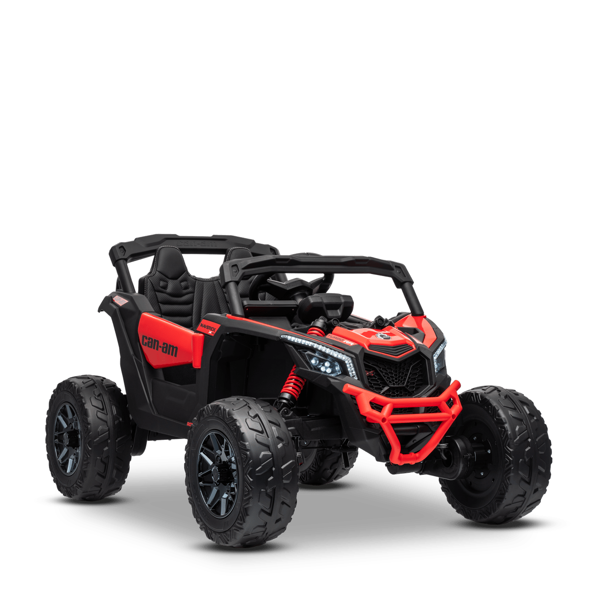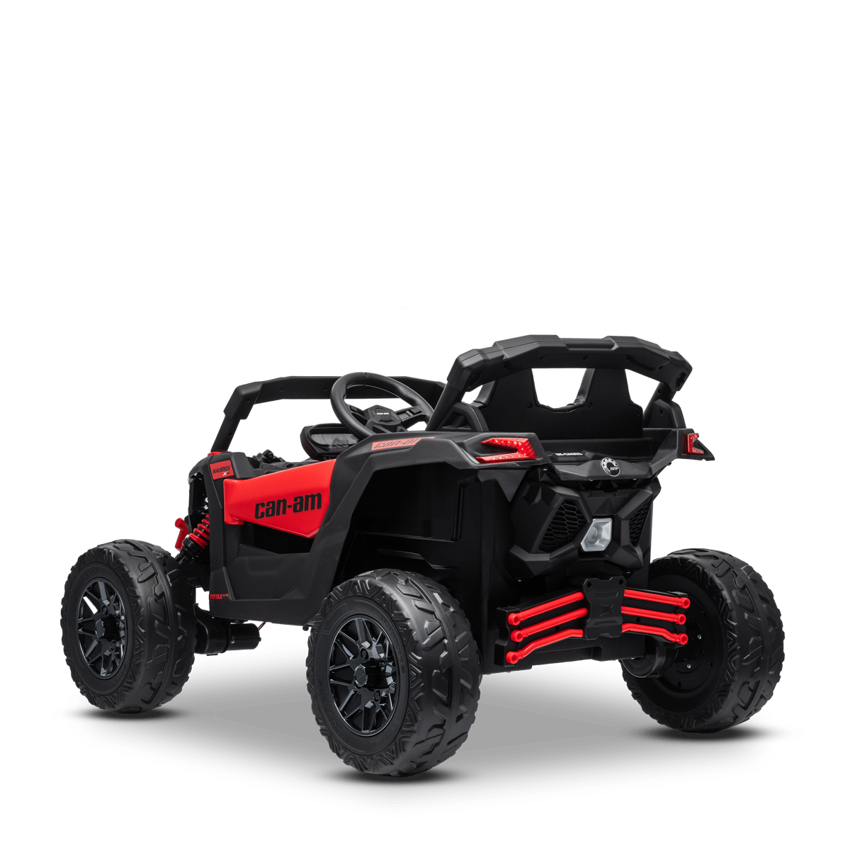 Découvrez le petit frère de notre modèle phare : Le Buggy CAN-AM Maverick UTV, un petit monstre de puissance avec ses 4 moteurs de 200W !