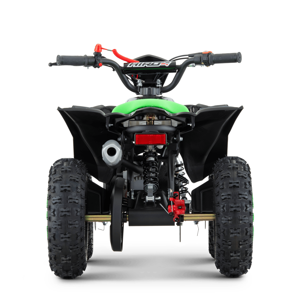Conçu Techniquement et Graphiquement par l'équipe Apollo Motors, ce pocket quad est une réelle réussite : développé pour tous les enfants de 4 à 6 ans, ce Quad de loisir dispose des éléments de sécurité les plus adaptés : Cordon coupe-circuit, limiteur de vitesse, protège chaîne, frein à disque avant/arrière.