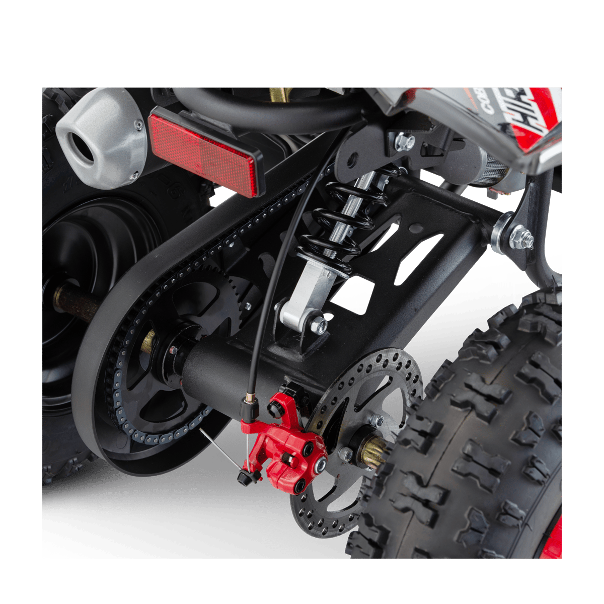 Conçu Techniquement et Graphiquement par l'équipe Apollo Motors, ce pocket quad est une réelle réussite : développé pour tous les enfants de 4 à 6 ans, ce Quad de loisir dispose des éléments de sécurité les plus adaptés : Cordon coupe-circuit, limiteur de vitesse, protège chaîne, frein à disque avant/arrière.