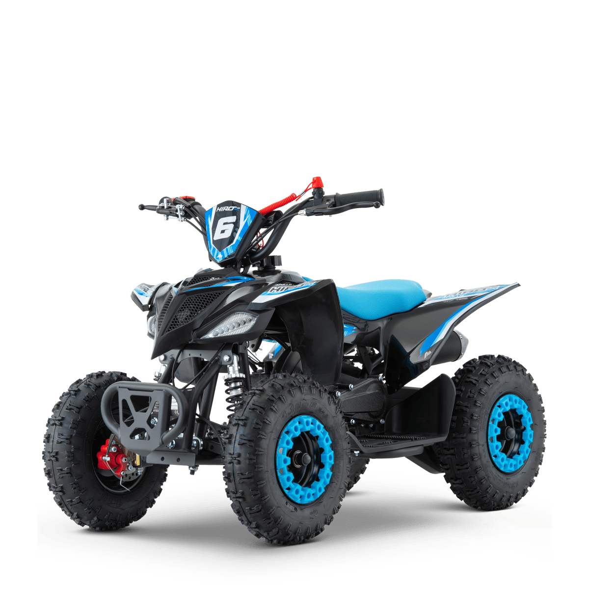Conçu Techniquement et Graphiquement par l'équipe Apollo Motors, ce pocket quad est une réelle réussite : développé pour tous les enfants de 4 à 6 ans, ce Quad de loisir dispose des éléments de sécurité les plus adaptés : Cordon coupe-circuit, limiteur de vitesse, protège chaîne, frein à disque avant/arrière.
