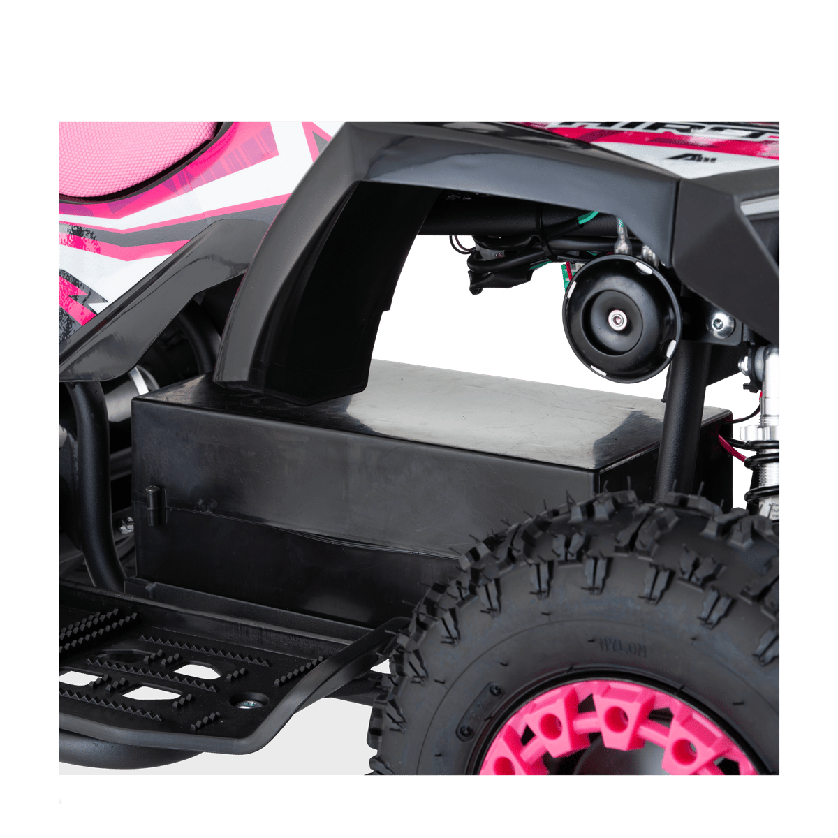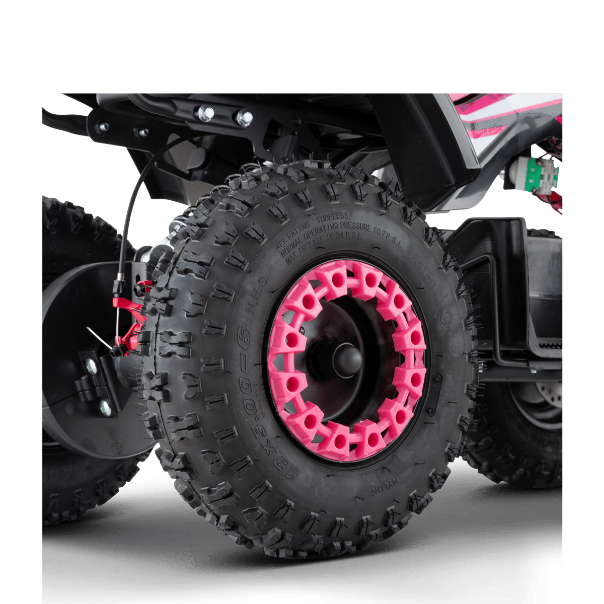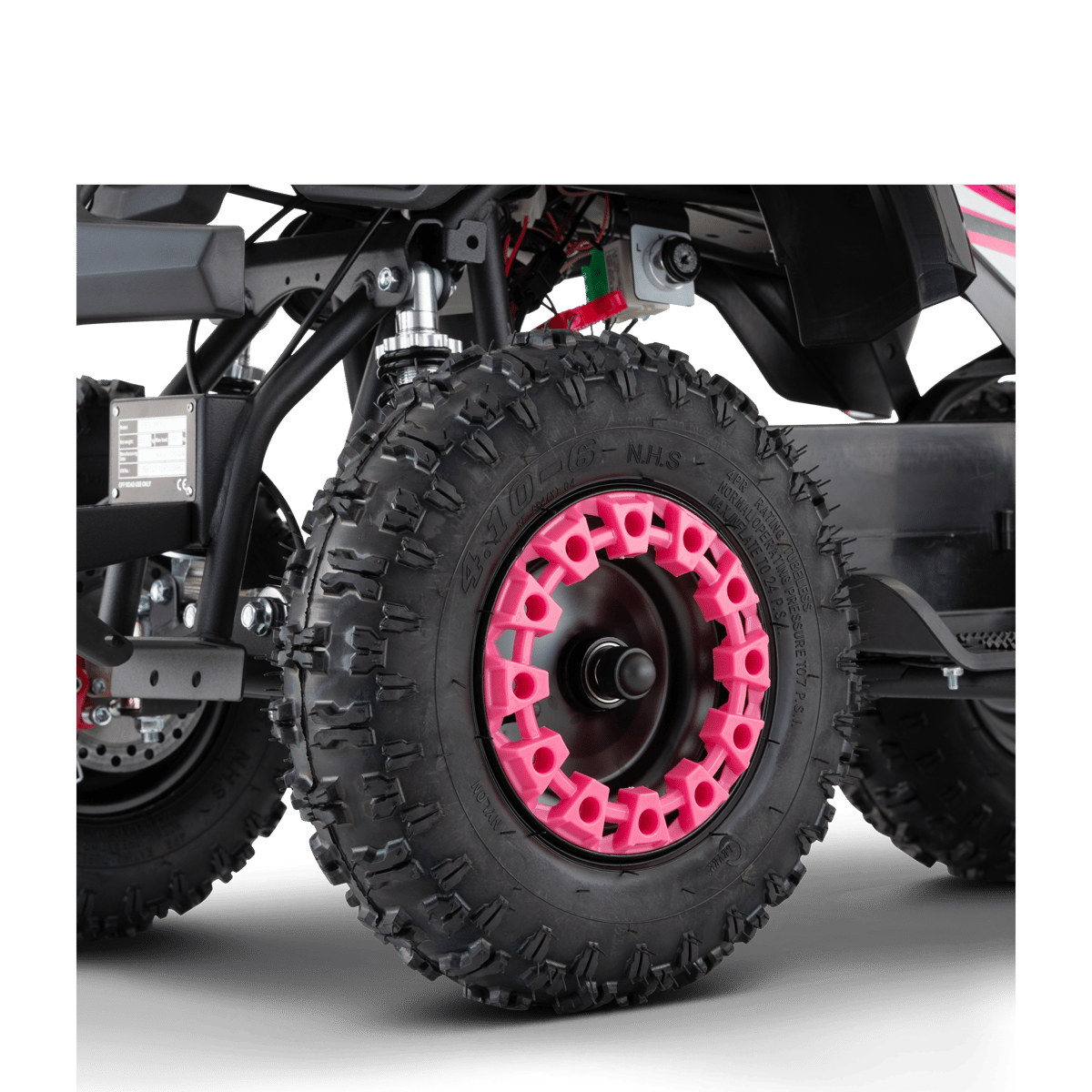 La force principale de ce mini quad reste : ses roues 6 pouces qui lui confèrent une très grande maniabilité et stabilité.