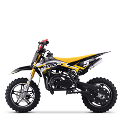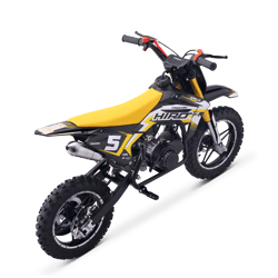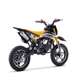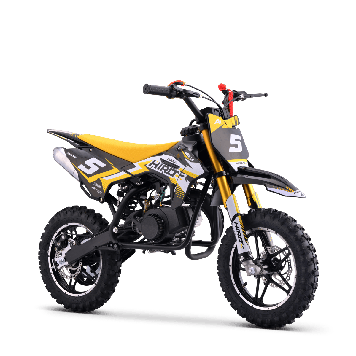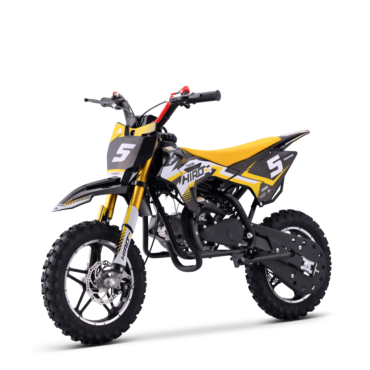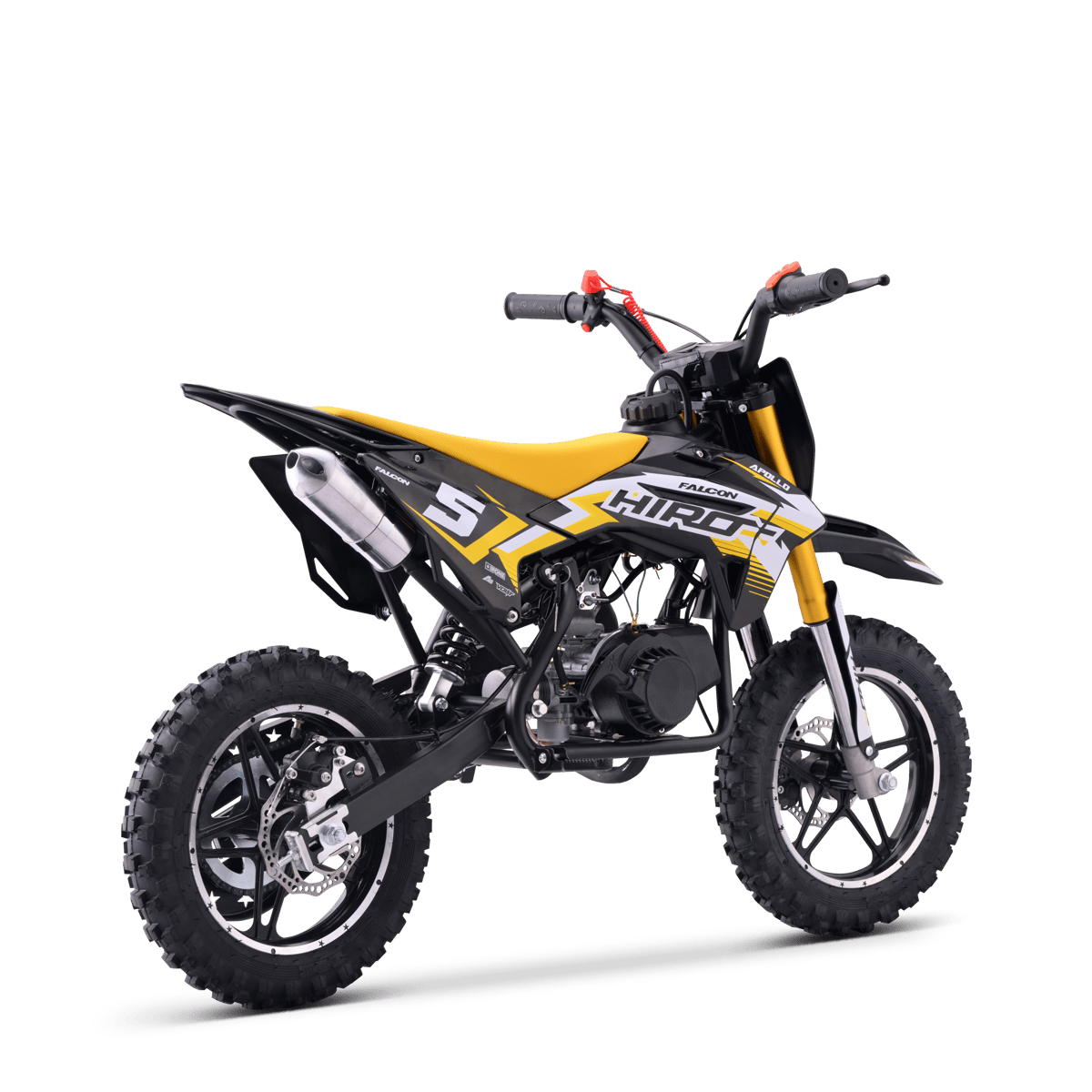 Légère, maniable et sécurisante, la Hiro Falcon 49cc est la pocket bike parfaite pour initier les enfants de 4 à 8 ans (jusqu’à 1m30) aux joies du tout-terrain. Grâce à son moteur 2 temps 49cc automatique et son limiteur de vitesse 3 positions, elle allie plaisir, apprentissage et sécurité.
