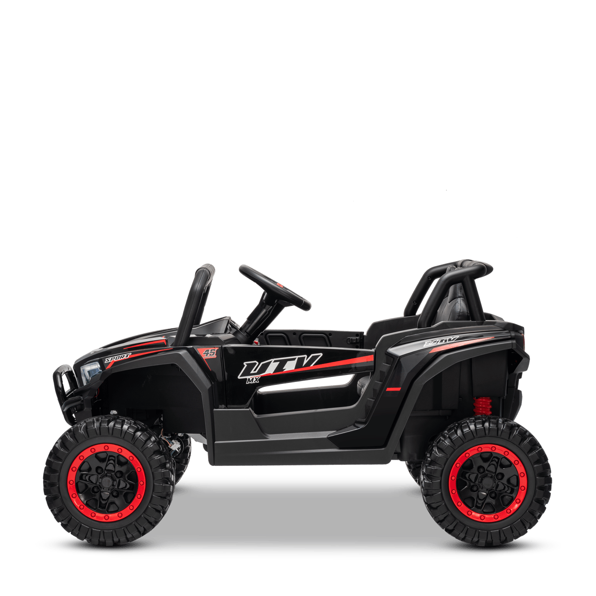 Avec sa carrosserie noire élégante, le Buggy Explorer 24V Noir s’inscrit dans une esthétique moderne et sobre.