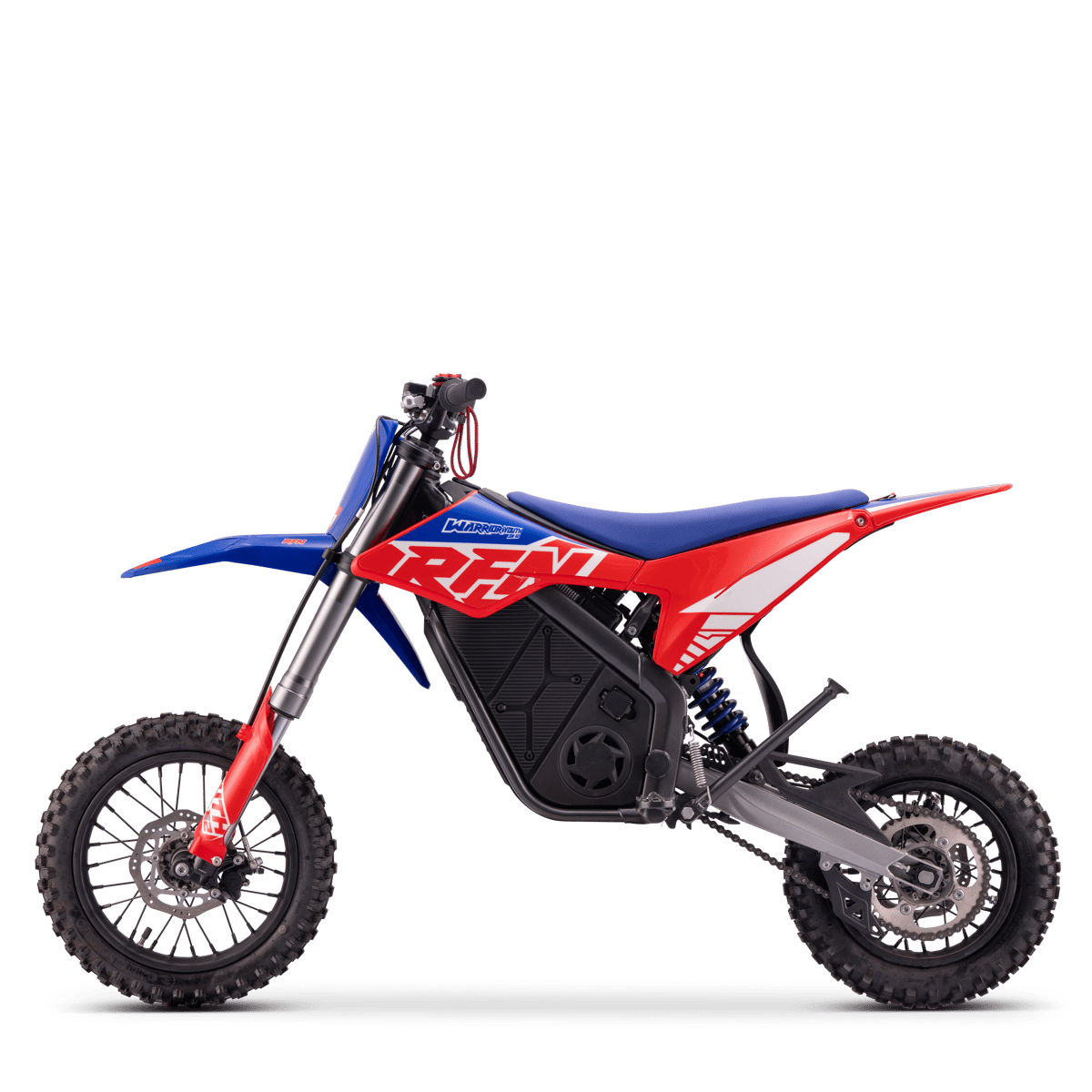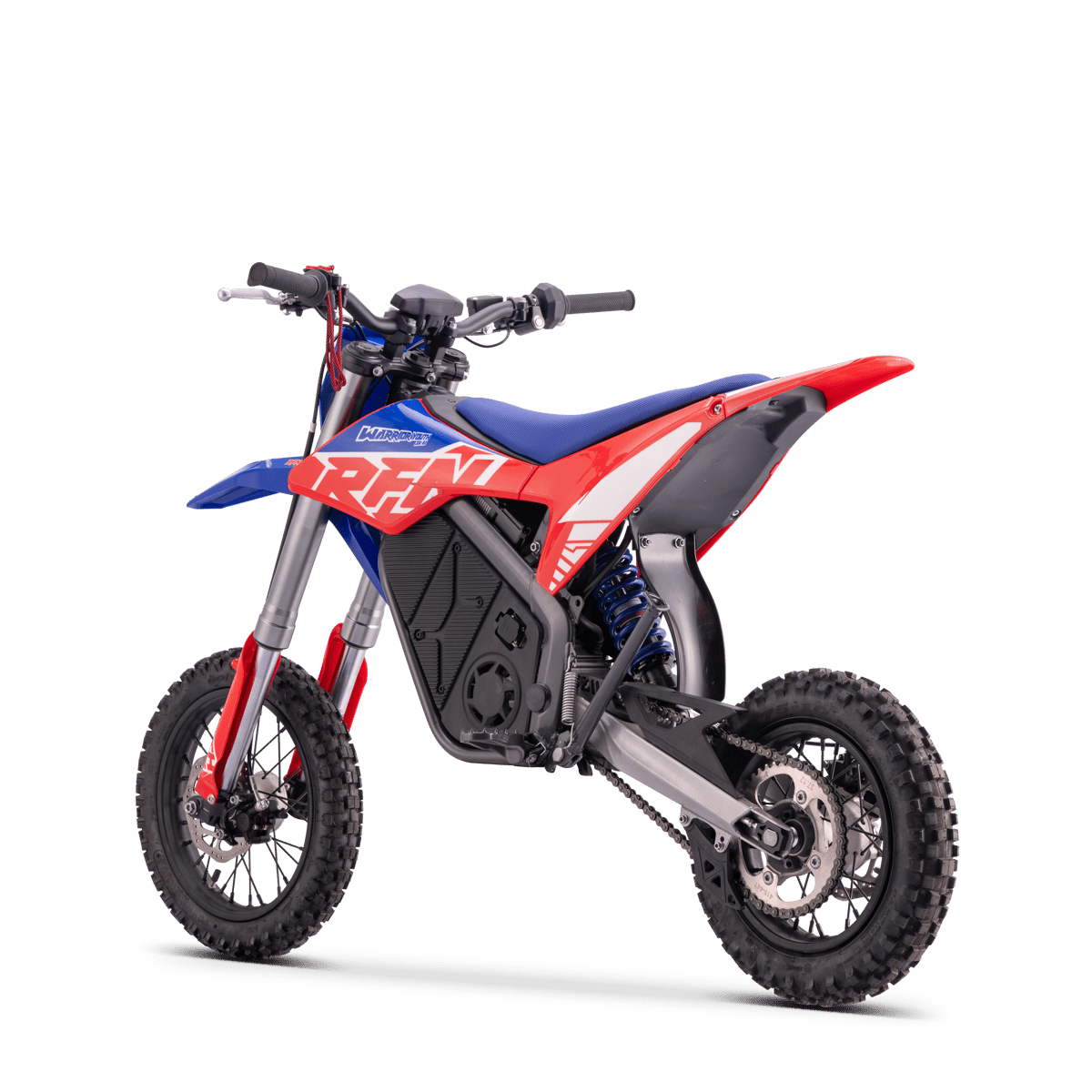 Sous son format adapté aux plus jeunes, la RFN SX-E2 intègre un moteur électrique de 1000 W. L’accélération est progressive, précise et parfaitement exploitable, idéale pour travailler l’équilibre, la trajectoire et la gestion des gaz dès les premières sessions.