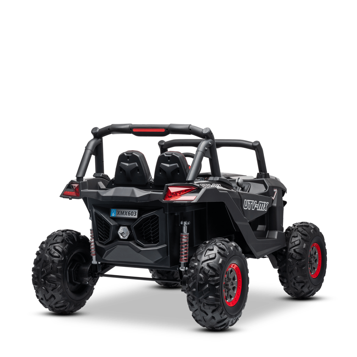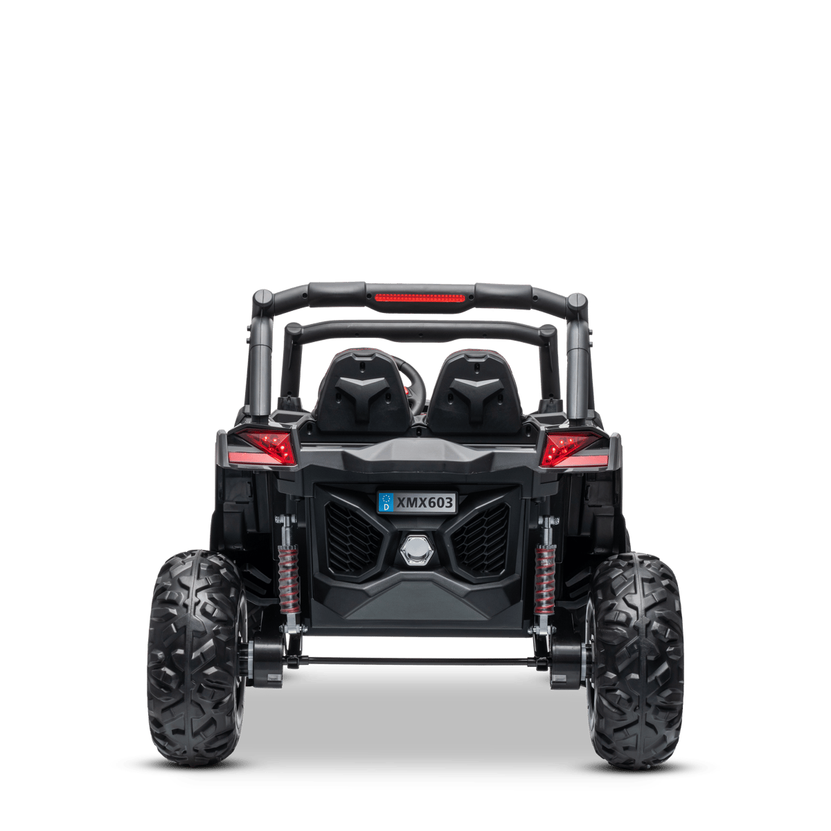 De plus, ce buggy électrique pour enfant est équipé d'une télécommande parentale codée de 2,4 GHz, permettant aux parents de garder le contrôle de la situation si nécessaire. Pratique pour les jeunes pilotes qui ont besoin d'un peu plus d'encadrement ou pour ceux qui veulent se sentir en sécurité. Attention aux imitations, il s'agit bien d'un SSV pour enfant 12 volts.